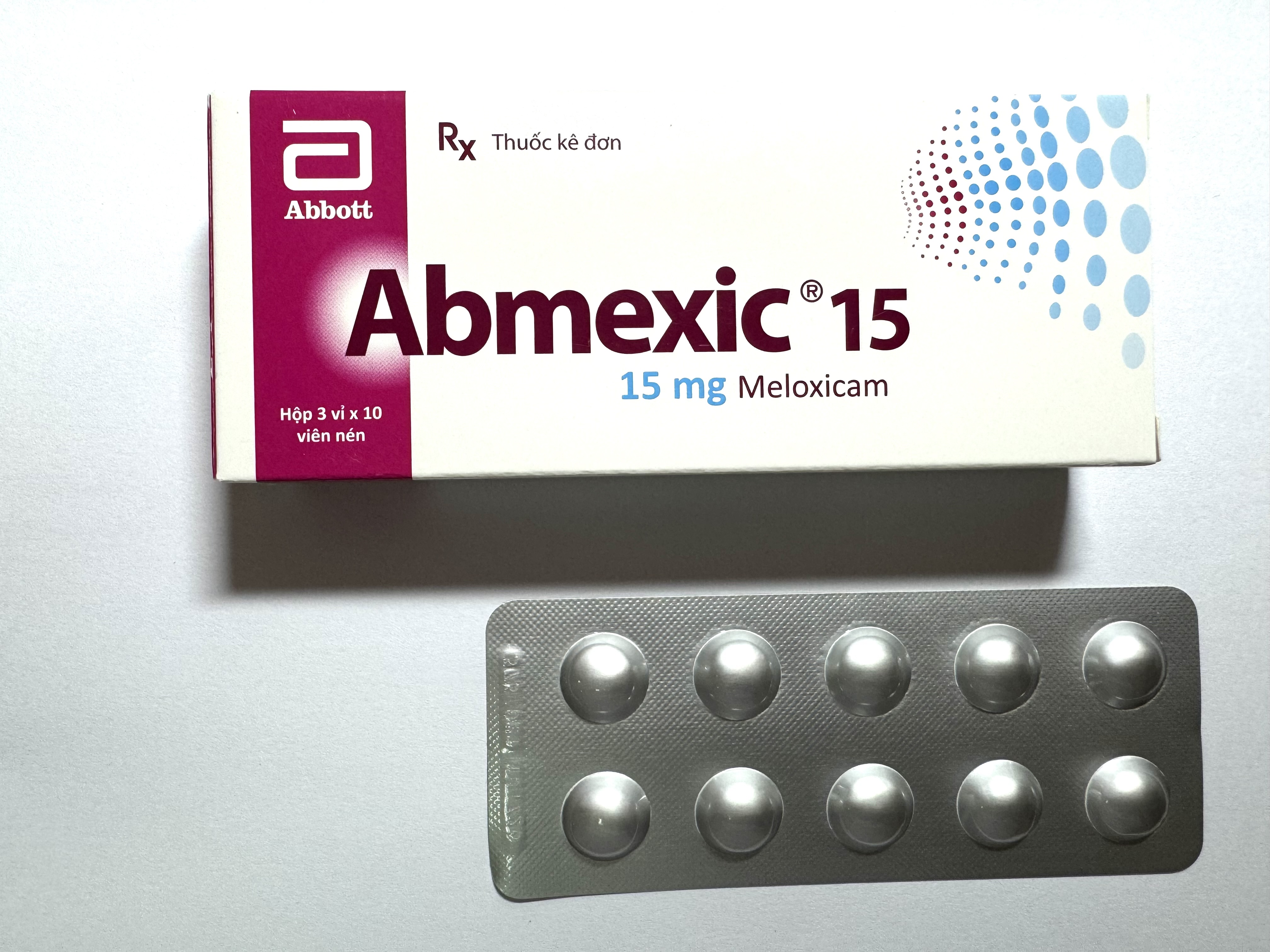 Thuốc Abmexic 15mg chứa hoạt chất meloxicam được sản xuất bở Công ty Cổ phần Dược phẩm Glomed dùng để điều trị viêm khớp, viêm khớp dạng thấp, viêm cột sống dính khớp.