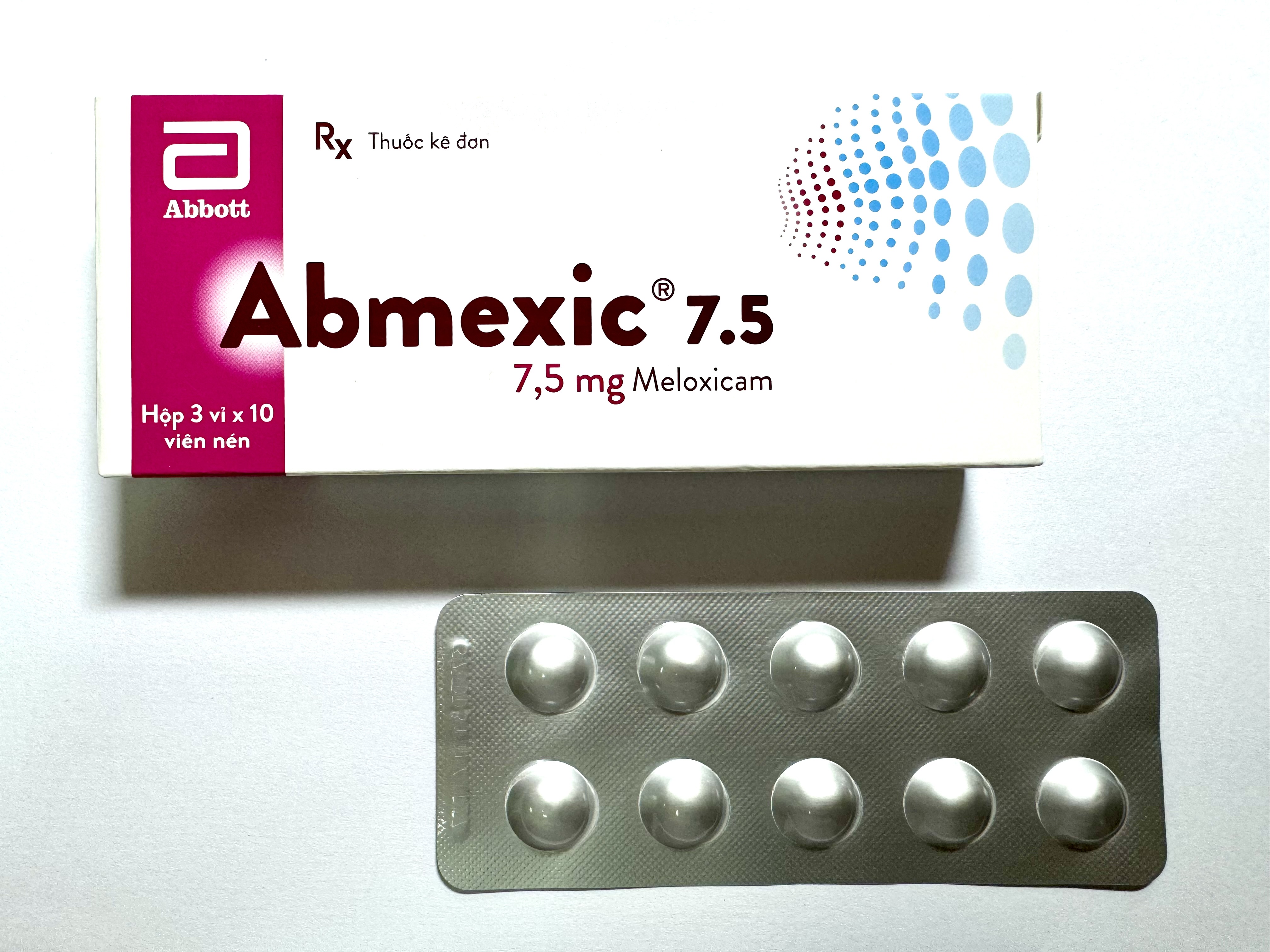Thuốc Abmexic 7,5mg chứa hoạt chất meloxicam được sản xuất bở Công ty Cổ phần Dược phẩm Glomed dùng để điều trị viêm khớp, viêm khớp dạng thấp, viêm cột sống dính khớp.