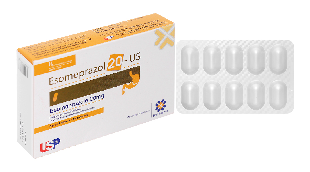 Thuốc Esomeprazol 20-US điều trị trào ngược dạ dày (3 vỉ x 10 viên)