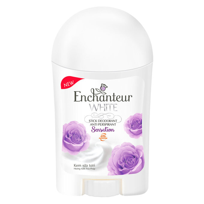Sáp khử mùi Enchanteur Sensation (40g) cho cảm giác khô thoáng và giúp làn da dưới cánh tay trắng hồng mịn màng.